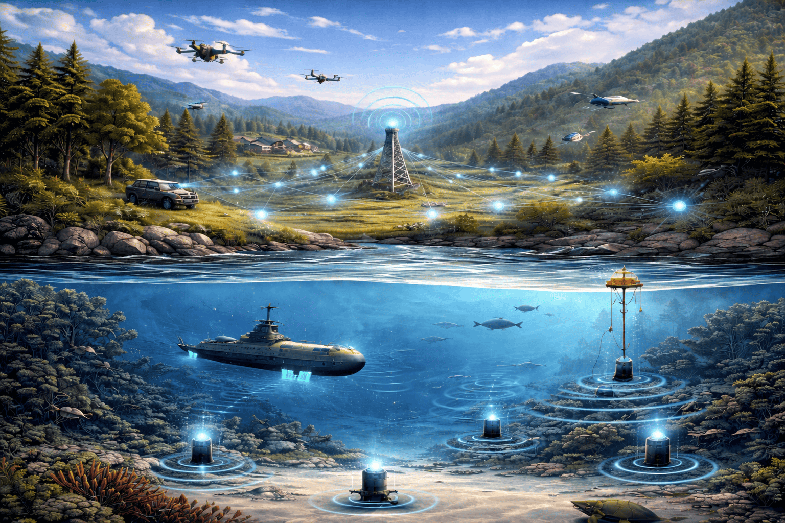 Design and optimization of energy-efficient routing, topology control, and communication strategies for terrestrial wireless ad hoc networks and underwater acoustic sensor networks. Research topics span network lifetime and energy-efficiency analysis, k-connectivity–based reliability, multi-sink architectures, void regions, adversarial effects, and operation under harsh and resource-constrained environments.